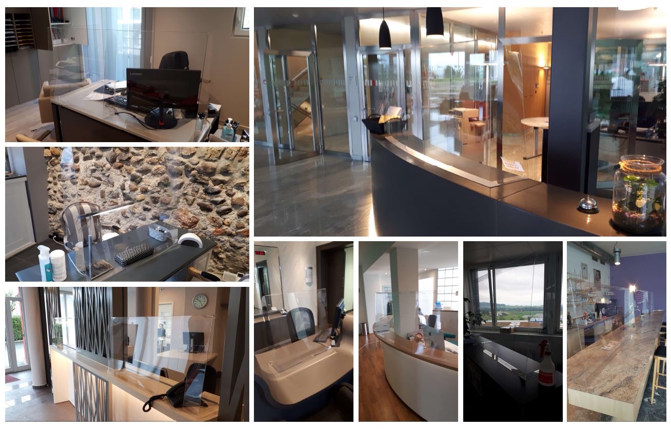 Nous avons conçu une protection anti-postillon en PET. Un concept simple, pratique et avantageux. Il peut être facilement éliminé de manière écologique après usage.